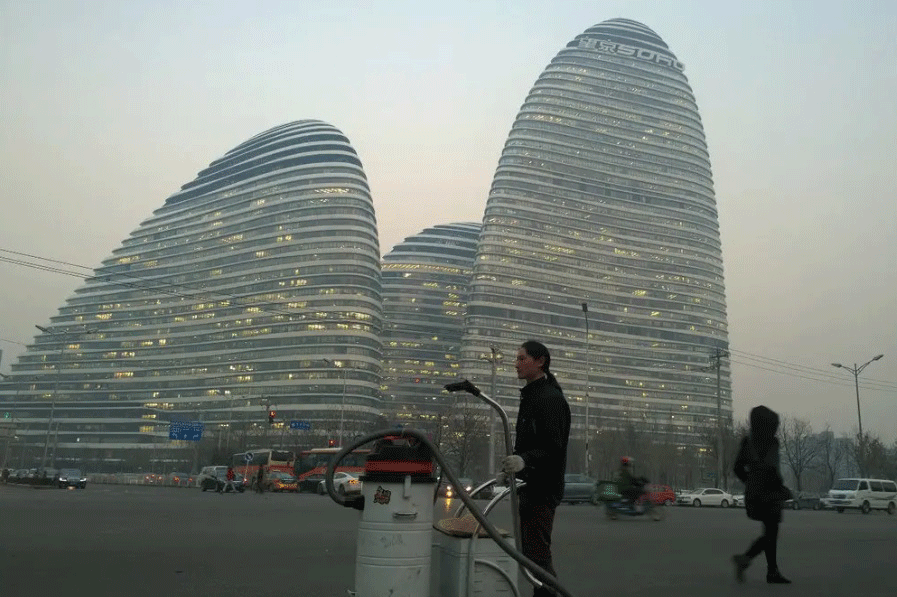 “Nut Brother” is a name the artist used on social media when just starting out—sharing his real name would be too risky. He became famous in 2015, showing up on the streets of Beijing with an industrial vacuum cleaner and pointing the hoover towards the grey skies.