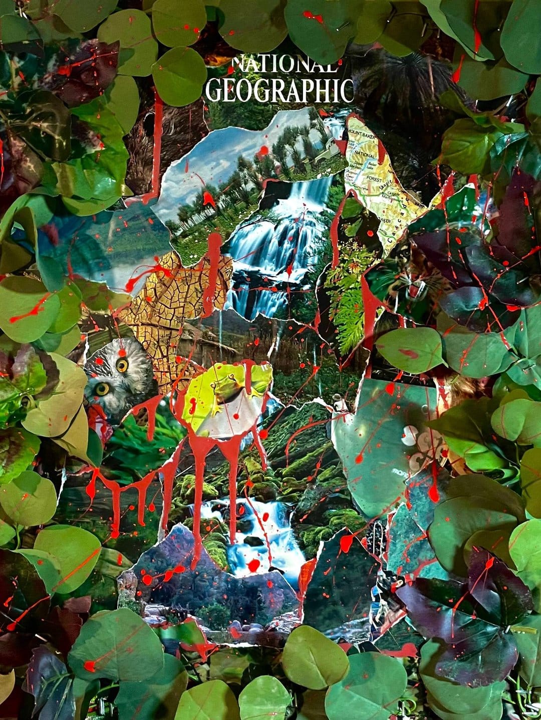 Gray d’Éon's abstract paintings serve as a poignant critique of human consumer culture and its devastating impact on nature. By transforming discarded plastic and packaging waste into layered, textured artworks, d’Éon challenges the aesthetic norms of cleanliness and precision and underscores the environmental cost of our throwaway society. Her work, steeped in anti-consumerist sentiment, highlights the pervasive presence of plastic in both the planetary ecosystem and the human body, urging viewers to reflect on their role in this crisis.