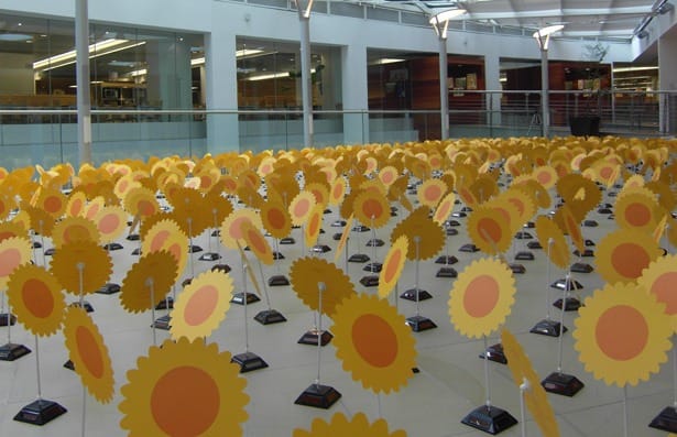 Out of the series, his Dancing Sunflowers particularly stand out. As the title suggests, the piece is a solar-powered kinetic sculpture of a sunflower. They also move like real sunflowers, following the sun’s movements across the horizon throughout the day, while also making small playful ‘bouncing’ gestures. These sunflowers move from side to side, beckoning people’s attention.
