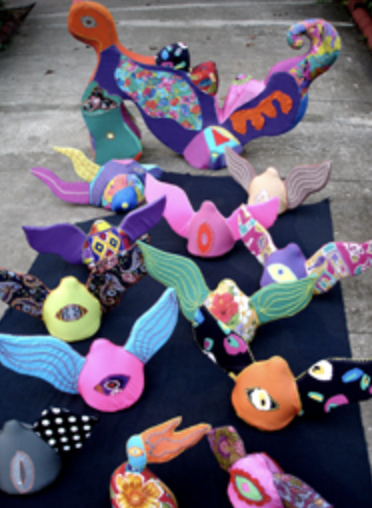 Aside from natural disaster-related workshops, Quinto also facilitated a project with sexual abuse survivors called Soft Dreams and Bed Stories. The installation features quilt-like, colourful, plush sculptures reminiscent of children's toys. Showcasing this installation is a way for these young sexual abuse survivors to process and reclaim their childhood.