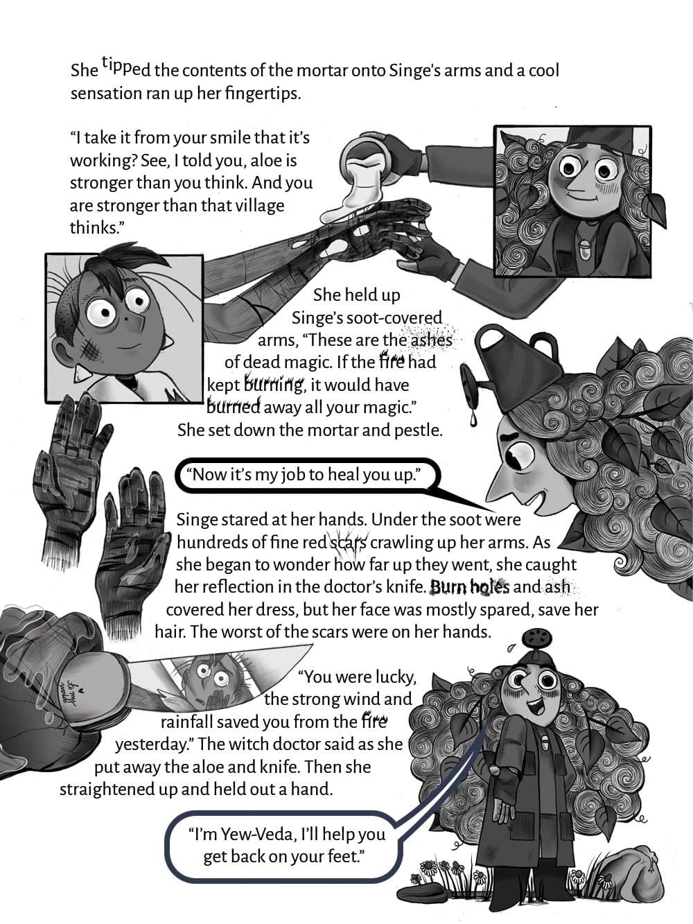 The story introduces us to Singe, a young witch living in the fictional Chamomile Valley. In this world, witches are not hunted for their heresy; they are employed for their utility. They serve their communities, ensuring the crops grow and the economy thrives. However, this social contract comes with a brutal clause: if a witch’s magic begins to fade—often the inevitable result of overexertion—she is deemed "useless." The community then performs a "cleansing," a euphemism for burning the witch at the stake to make room for a fresher, more productive replacement. Singe, having been drained by the relentless demands of her village, finds herself tied to the pyre. She survives only because a sudden rainstorm extinguishes the flames, leaving her alive but stripped of her memories and her magic.