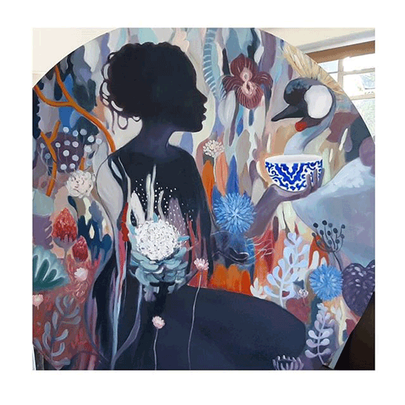 Leila Fanner took an unconventional route to become an artist: while she initially enrolled in art courses, she majored in drama. Despite this, Fanner knew that visual art was her true calling. She held her first exhibition at 23 years old and has since appeared in three solo exhibitions. She is a regular in local group exhibitions, and her work is privately held throughout the world. Today, Fanner is influenced by Science of the Soul, a meditative practice that encourages early morning meditation. Fanner considers her art “a bridge between the spiritual world and the physical world,” one that helps her make sense of the world around us. Currently, several pieces of Fanner’s work is on display at the Band of Vices annex and will remain there until 10 October 10th, 2020. Arts Help Writer Rachel Ezrin recently interviewed Fanner to discuss meditation, femininity, and the natural world.