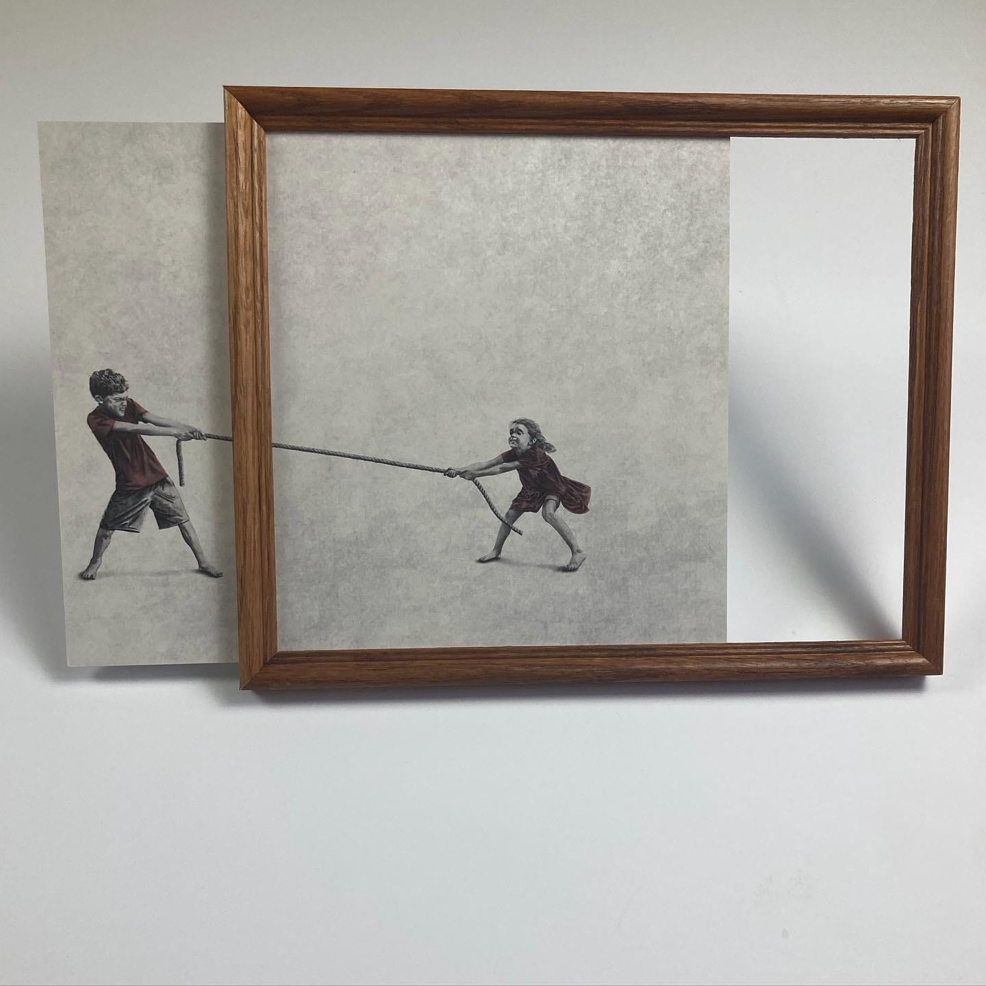 Aside from building connections with each other, as seen in his piece The Gap and Tug of War, resilience is yet another recurring theme in his pieces. As seen in pieces like Stepping Stone and Off Kilter, Scott talks about resilience by using his frames to give the children he has painted little obstacles. The children are either faced with a slightly crooked frame or sawed away, forcing them to slide down and hop across the frame to move freely. By showing how these children choose to approach these obstacles with play, Scott is reminding his viewers of the need to approach their life’s obstacles with child-like wonder; a state of mind that will allow them to look at things from a different perspective and solve their problems with ease.
