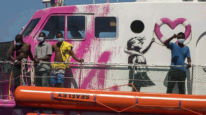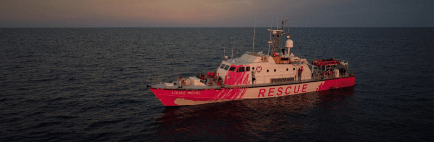 Banksy first started planning the project in September 2019, when he reached out to Pia Klemp who had led several missions with NGO boats to rescue refugees. He wrote a short note, which read: “Hello Pia, I’ve read about your story in the papers. You sound like a badass. I am an artist from the UK and I’ve made some work about the migrant crisis, obviously, I can’t keep the money. Could you use it to buy a new boat or something? Please let me know. Well done. Banksy.” Klemp accepted and the 31-meter vessel was purchased.