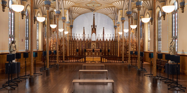 Utilizing unique materials, the artists orchestrate truly diverse artworks that range in scale and form, from immersive spatial installations to performative sculptures and choreographed real-time nature walks. The two describe their works as “hybrids between theatre, music, and the visual arts.” An artwork made by Cardiff and Bures Miller expounds on two unconditional elements––the perceptual impact of sound and the power of engaged audience and artwork interaction.