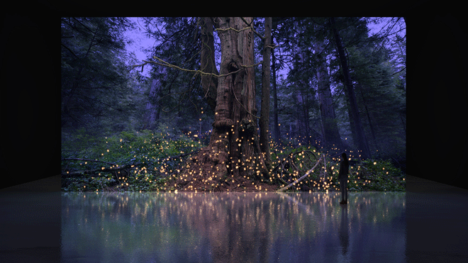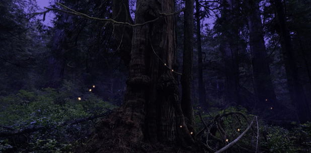 As Richardson describes concerning Embers and the Giants, “In the forest appears to be thousands of floating embers of light.” While watching, a viewer “might assume that they are looking at fireflies, but as they watch, they notice that something is not quite right…” They soon realize that “Perhaps they are looking at thousands of tiny drones.” In this work, Richardson aims to imply that there may come a “time in the future when we have to amplify the spectacle of nature…artificially, in order to convince the public of its worth.” In real life, areas like this land and other lands around Vancouver Island are popular tourist destinations and old-growth trees “are remnants of industrial logging. For Richardson, the film raises a question that touches a core of SDG 15 concerning Life on Land; “in light of the terrifying fallout of continued, large-scale biodiversity loss worldwide, when are vital ecosystems worthy of preservation?”