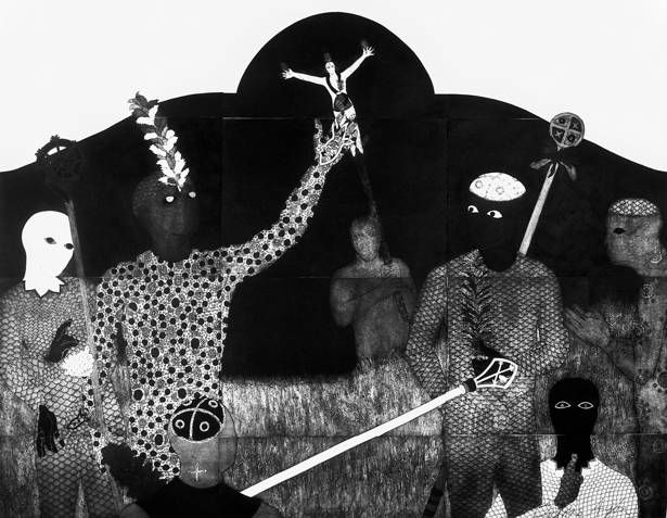 While the artworks speak to a spiritual realm, Ayón laboured over its depiction with a technique born out of necessity. The dissolution of the Soviet Union plunged Cuba into nationwide poverty, leaving traditional art materials in short supply amongst food shortages and sky-high petrol prices.