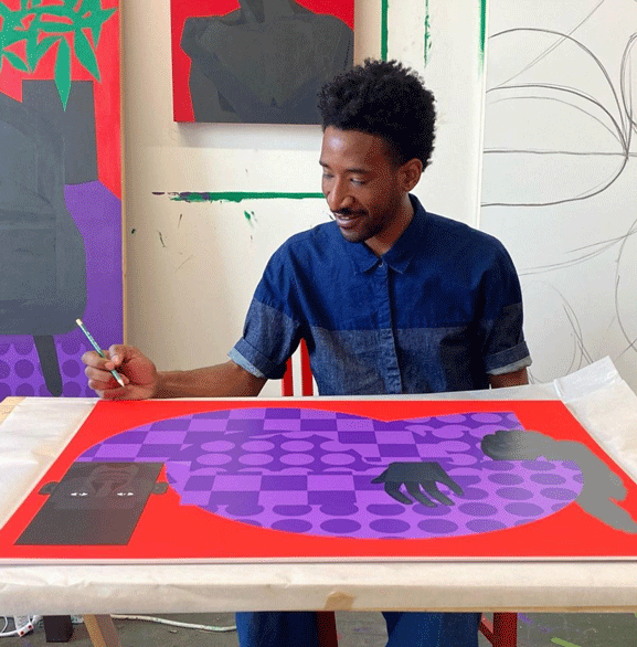 Now, using paint, silkscreens, and collaging techniques, Key's work consistently touches on the UN’s Sustainable Development Goals of Reduced Inequalities and Peace, Justice and Strong Institutions to emphasize his desire to portray the future of Black and queer Americans and the fragmented American Dream.