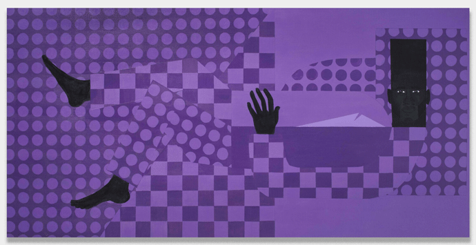 “My work challenges space, perception and the performance of the figure. The Man in the Violet figure, specifically in my earlier works, responds and contorts to the opaque space that he is, but is looking directly at the viewer with unrelenting strength, power and will.”