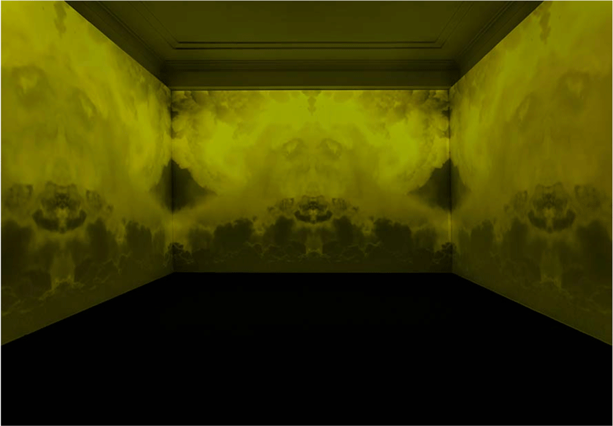 One of the most powerful installations within Spectre is Test of Faith, a three-panelled video installation, in which Despain mirrors declassified videos and images from the testing of the atomic bomb at the Nevada Test Site. Nearly three and a half minutes long, Test of Faith transplants viewers to 1945, into a darkness where mushroom clouds tower over the Nevada Desert. Test of Faith greatly reflects Despain’s family history, as the video plays to the layered soundtrack of the Mormon hymn “Love one Another,” a reference to American military’s appeal to Mormon settlers in the fallout regions within Despain’s home state Utah, to call for support for nuclear testing “under the guise of united patriotism.”
