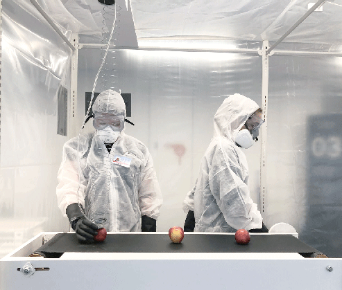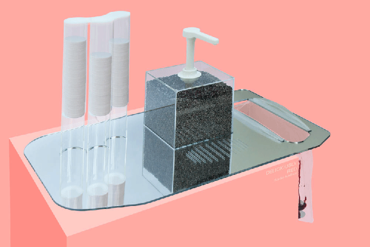 Concerned about the environmental impacts created by major production industries, Brunato redirected her career. She now researches methods for sustainable materiality and studies how “human demands meet wider ecological systems.” Her past work includes the project Deliciously Red, a visual installation that investigates the production of industry grade red food colouring, which is a pigment commonly derived from Cochineal bug blood. In the 2018 performative installation Global Nanolamination Centre Ltd, Brunato investigates standard processes in food packaging industries. She studies the apple which “is a fruit that naturally forms a wax coating around its peel as a means of self-defence,” but in today’s food industry apples are coated with petroleum-based wax. Brunato explores how cellulose nanotechnologies provide an alternative to the petroleum-wax coating of fruit. Global Nanolamination Centre Ltd encourages new sustainable processes food packaging.