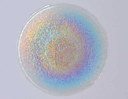 With Bio Iridescent Sequin, Brunato creates sequins with attractive and luminous aesthetics in a “natural way,” through a process that is not reliant on finite petroleum resources or precious metals.” Developing a process that makes “sense for a future consumer model,” her Bio Iridescent Sequin is a new approach to aesthetic sustainability and breaks “down preconceived notions that generalize how,” sustainable products look and behave. According to Brunato, the sequins are formed “in different shaped moulds, so there is no excess waste from offcuts produced.” Deriving inspiration from nature––thinking about how iridescent materials exist in nature from beetle shells to peacock feathers––Brunato and her scientific partners administered a way to use cellulose extracted from trees to form the sequins. India Block explains that “cellulose's crystalline form refracts light and makes the sequins naturally shimmery, without the need for chemical treatment.”