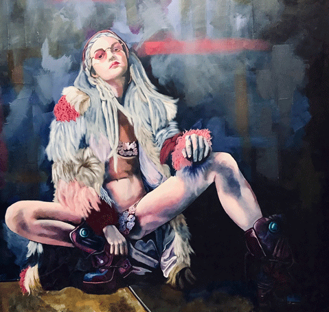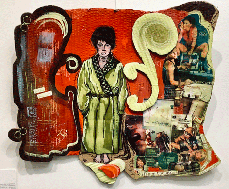 In another cultural commentary, Define Yourself, a mixed media work by Deborah Simms criticizes the continuing sexualization and objectification of women in media and advertising campaigns.
