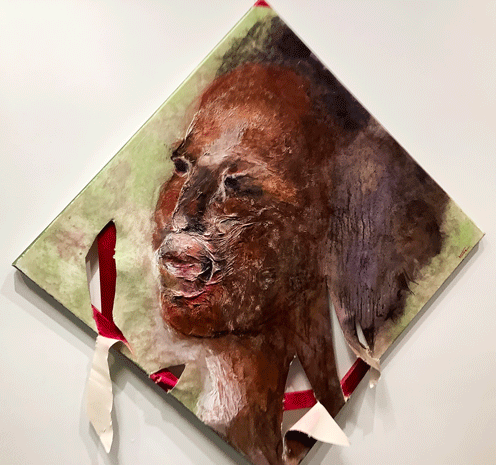 #StopAcidSales, a mixed media work by Kim Kwaz McKerracher, directly invokes gender equality through its visceral depiction of the facial deformities of a woman scarred from an acid attack. According to the plaque accompanying the work, 80% of all acid attack victims are women and girls who suffer intense pain, third or fourth degree burns, psychological trauma, economic prevation and social ostracization.