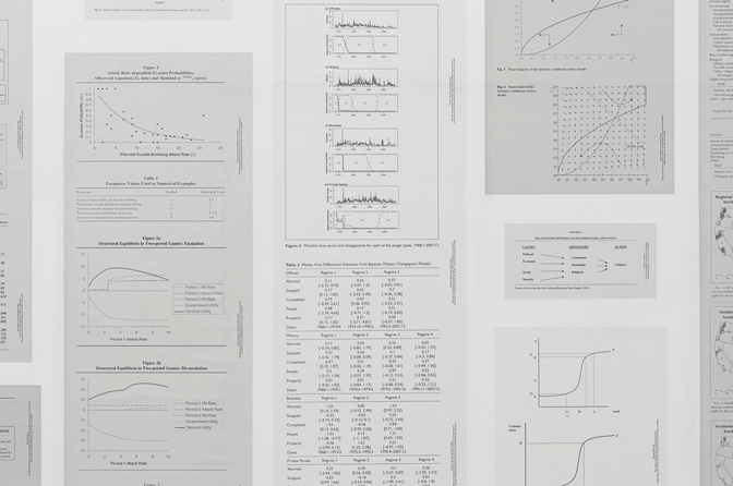A few of the paper titles from which Éric took the images are: “Hijackers, Bombers, and Bank Robbers: Managerial Style in the Japanese Red Army”, “Legitimacy and Deterrence Effects in Counterterrorism Policing: A Study of Muslim Americans”, and “Palestinian Suicide Bombing Revisited: A Critique of the Outbidding Thesis.”