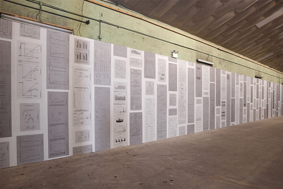 Although the size of the artwork leaves the viewer unable to grasp the information, Éric wants to fight the censorship of knowledge and imagery, and give the viewer a space free of barriers. He wants the viewer to be comfortable with the concept of not understanding something.