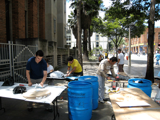 The kit consists of two dark, triangular-shaped balloons which float when filled with air and get heated by the sun’s rays. The instructional manual for the aerosolar sculpture can be downloaded here, or on their website.