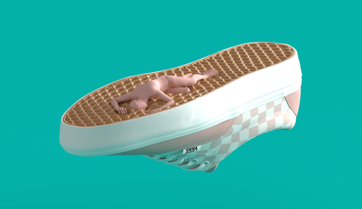 In contrast to the muted Ghost in the Shell collection, Zolloc’s Vans series goes back to his usual style. He clashes bright colours with recognizable objects to attract audiences to both the brand as well as the art.