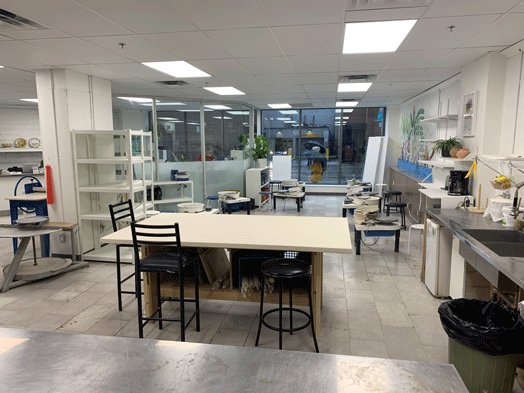 At the Studio, women can work out their traumas and heal with clay. We also assist women with improving their lives through the making and selling of the pottery they create. The program starts off with an 8-week course where women come in for an interview to see if this is the right fit for them and then apply to become members. Membership allows them one or two afternoons a week of free studio access. Members also act as mentors to new women who join the program. We’ve been in operation for 27 years and have had three locations in Toronto — this location is our most recent.