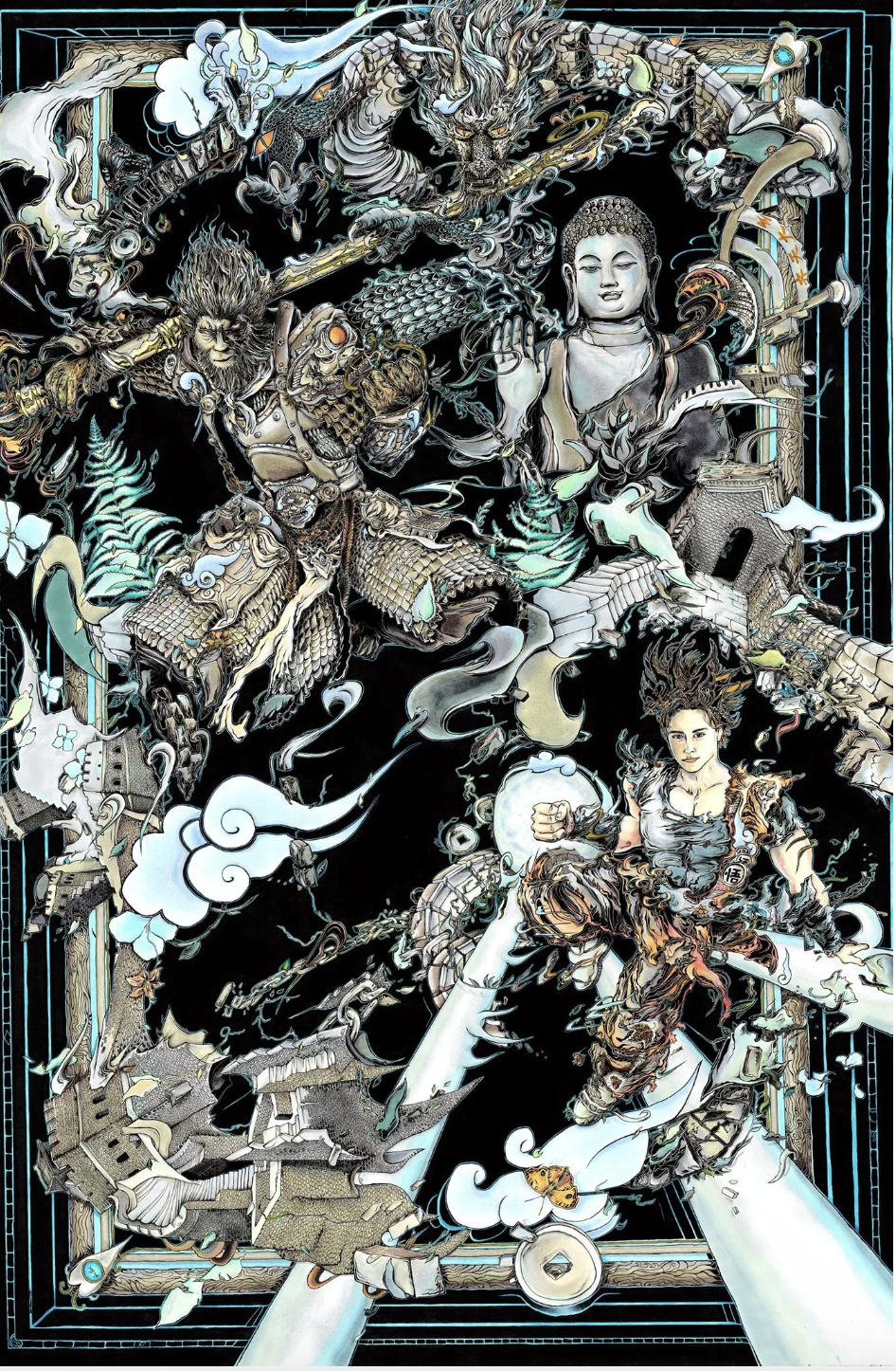 6. As someone who works with deeply traditional, hyper-detailed drawing techniques but also engages with modern, digital/NFT-inspired concepts, how do you see the physical and digital art worlds intersecting in the future?