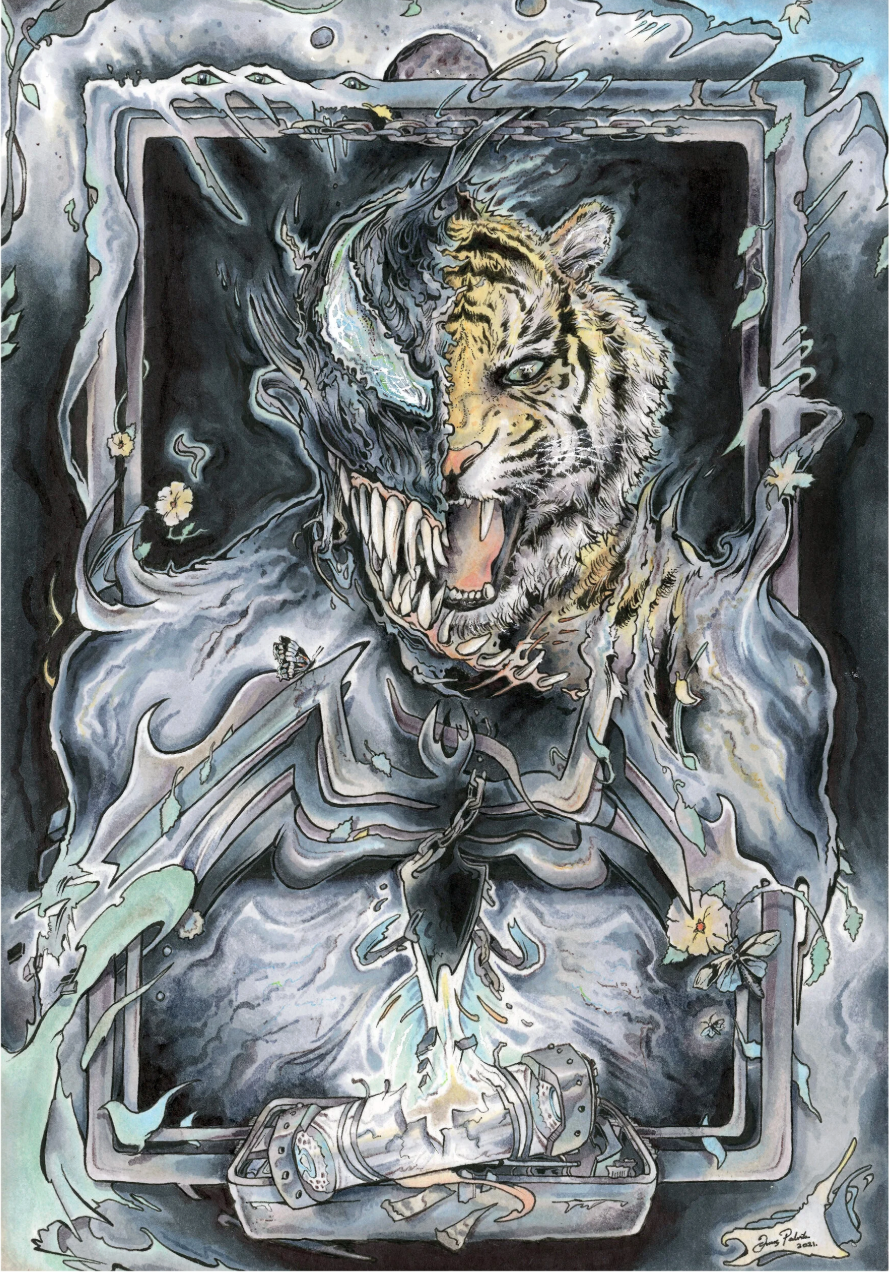 3. You created your highly detailed Venom series during the intense isolation of the COVID-19 lockdowns, noting that you needed an artwork to "bury yourself into." Can you elaborate on how the physical act of drawing served as a mental health refuge for you during that time?