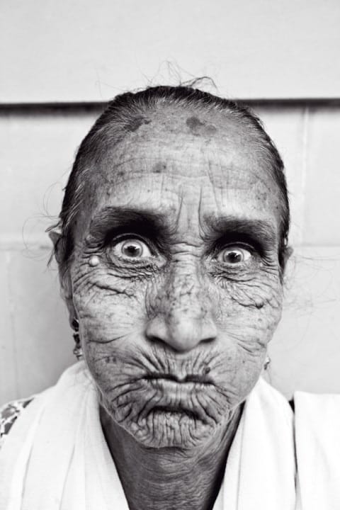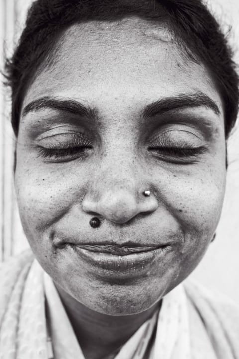 Take, for example, JR’s portrait of Praveen Mazahar from India. It’s accompanied by her story of surviving domestic violence and raising her young daughters as a single parent.