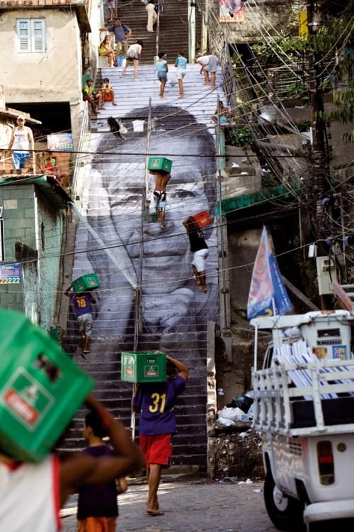 The installation of his photograph of Benedita Florencio Monteiro from Brazil is, for example, a piece that fills up an entire staircase on the side of three different homes stacked above one another. This allows Women are Heroes to take space and scream for the attention of a passerby. These women are no longer marginalized or overlooked; the project has helped them disrupt established power dynamics and assert the importance of their voices and experiences.