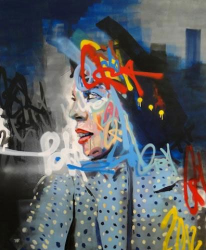 Her female subjects are made modern and interesting by the use of graffiti techniques, making her take on street art all the more interesting. She gathers her subjects from social media, but they remain anonymous.