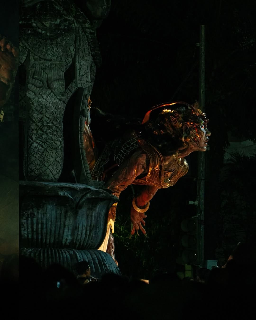 Visually, Sapa Warang challenges the observer’s perspective through mirrored geometry featuring a dual-oriented face. What appears to be the front from one angle is actually the back, and vice versa. This intentional ambiguity forces the audience to realize that their understanding of reality—human and demonic, good and evil—is entirely dependent on their physical and spiritual position. As analyzed by Tatkala, the figure’s body is covered in intricate cracks that serve as pathways for inner light rather than signs of decay. From these fissures, a red glow emerges to symbolize the suppressed emotions and truths of the human experience that eventually demand an exit. In a striking subversion of traditional iconography, the statue features a Jaladwara (sacred water spout) that emits fire instead of holy water, representing a world where the human ego has turned life-giving elements into destructive forces.