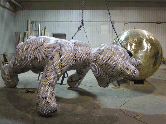 Making a public artwork that is the scale of Petit Frere, Bear & Planet in Toronto Marriott Markham is a long, laborious, and collaborative process. What does creating a project such as this entail? Once you have an idea of public artwork, what are the steps that follow to make the piece an actuality?