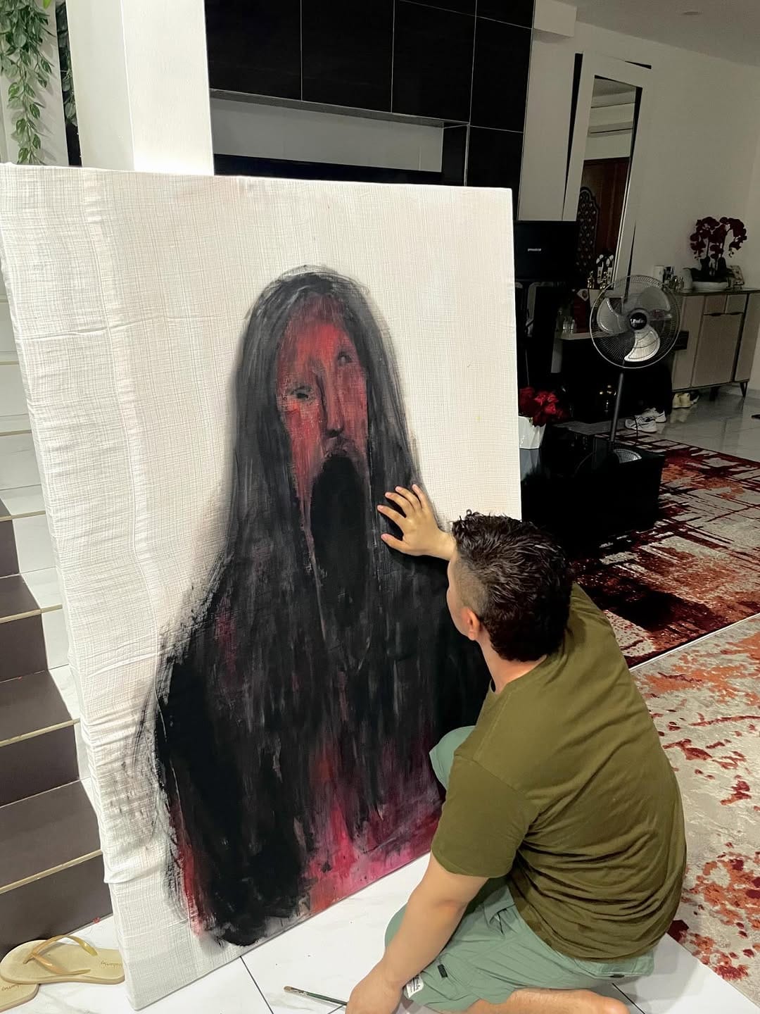 Video of Miman's painting process, November 2025. Video courtesy of Miman Zamri's Instagram.