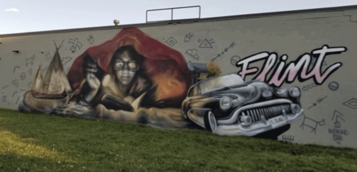 Many of Flint’s struggles have been well-documented, especially the Water Crisis of 2014-2016, when a switch in provider allowed lead to leach into the water supply. Nevertheless, there are indications of hope and resilience, as the community has banded together to reimagine the city and show the world that there is more to Flint than its litany of problems. Of note, is the Flint Public Art Project (FPAP), a nonprofit headquartered in downtown Flint, that has worked to reinvent the city as a street art destination and international art hub.