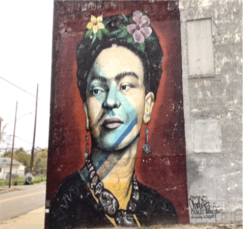 A business or organization must be located within the city of Flint to submit a proposal for consideration to receive a mural, after which local and visiting artists are commissioned with the help of FPAP. As of Spring 2021, over 160 murals have been painted throughout the city and its neighbourhoods courtesy of the FPAP and CO_labs. Some of the murals are colourful and celebratory, others more solemn. Many are filled with symbolism. The murals often commemorate real events, persons, or issues. For instance, there is a 2019 mural of Frida Kahlo by Charlie Boike for Knoblock Hardware, and a 2019 mural by Flint native Kevin “Scraps” Burdick depicting the 1965 54-mile march for voting rights from Selma to Montgomery, Alabama that pays homage to civil rights icons Martin Luther King Jr. and the late U.S. Representative John Lewis on Martin Luther King Avenue, and a 2019 mural by Murales Lian referencing immigration on the Flint Latinx Technology and Community Center.