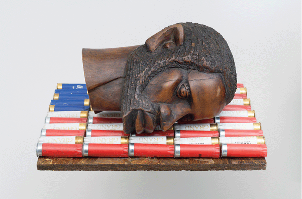 In Cave's 2018 untitled pieces, featuring a carved wooden head of a Black man lying on an American flag made solely from used shotgun shells, What It Is highlights how the United States and its institutions have continuously failed to meet specific Sustainable Development Goals. Works like these, showcased throughout this chapter, so deeply and drastically underscore what exactly is wrong with formal institutions in the nation and how divided the nation is when it comes to reducing inequalities.
