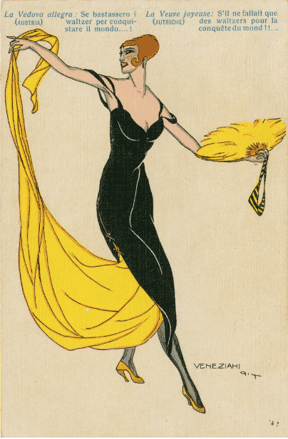 The Art Nouveau style, however, soon evolved as the designs simplified, developing geometric lines and vibrant colours, shifting away from the naturalistic look of Art Nouveau and towards the sleek designs of Art Deco. Although Art Deco postcards often still depicted women, the shift in style brought with it a shift in perspective. The female figures were given a sense of autonomous freedom, and as the postcards circulated the globe, they aided in promoting social evolution.