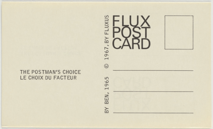 The postcard industry fell following its height during WWI due to the emergence of automobiles, amateur photography, the illustrated press, telephone, and radio, which raced to replace the versatile functions of the postcards. Additionally, the development of industrial production subsequently lowered the quality of postcards and diminished their artistic value. However, the 1960s and 1970s saw a revival of the postcard with innovative designs as artists began to notice the potential of the small, traveling canvas. For artists looking to express their disapproval of the elitist art world, postcards were and are the perfect medium. The postcard is art that those of any social class could own and hold in their hands. Additionally, postcards allowed both independent and esteemed artists to cheaply mass produce their works and have them circulate the globe without the need for assistance from traditional museum and gallery networks. This trend also brought artists new freedom to create works that held socially charged messages commenting on political dissatisfaction and other taboo subjects, such as John Lennon and Yoko Ono’s iconic War Is Over! (1970) which globally expanded the Lennon-Ono peace campaign.
