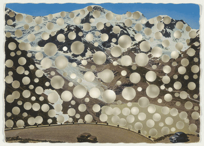 Experimental art dominated the postcards of the 1960s and 1970s, bringing a new appreciation to a seemingly outdated mode of communication. Ben Vautier’s absurdist piece, The Postman’s Choice (1965), involves an interactive element by duplicating the recipient address on the front of the card, inviting the sender to address the postcard to two different recipients, presenting a dilemma to the postman who must decide who to mail it to. In another example, Rachel Whiteread’s untitled 2005 mail art transforms an existing postcard by strategically punching holes into the alpine landscape.