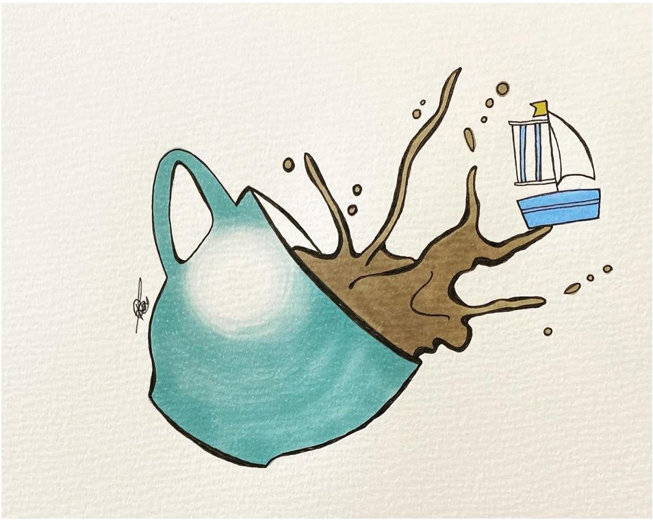 One of Fontaine-Pasquali’s most powerful pieces, and coincidentally one of her favourites, is this drawing with a medication bottle and two figures sitting on either side of the bottle. For Fontaine-Pasquali, this drawing represents her conflicting relationship with her medication, underscoring once again how the theme of medication plays a vital role in Fontaine-Pasquali’s work and inspiration.