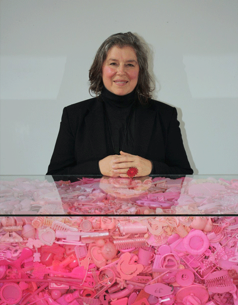 Using her lifetime collection of plastics and waste, Munson has been releasing and reforming her series the Pink Project, which was originally conceived in 1994 to redefine femininity through garbage.