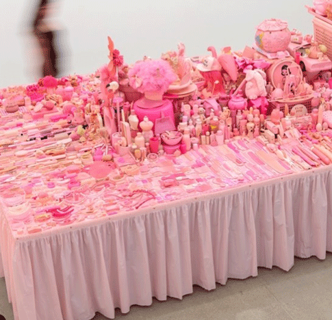 Munson’s arrangements of her collected pink objects is a jarring reminder that the consistent flow of marketing fed to female audiences will continue to live in landfills, even when the audience is long gone.