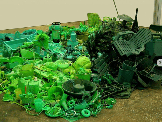 From a young age, Munson has been collecting plastics from landfills, swap shops and yard sales to delineate them in a way that challenges what it means to be a woman and a citizen of planet Earth. Her work consistently explores the meaning of colour, the destruction of nature and the definition of femininity through installations, mandalas and still life paintings.