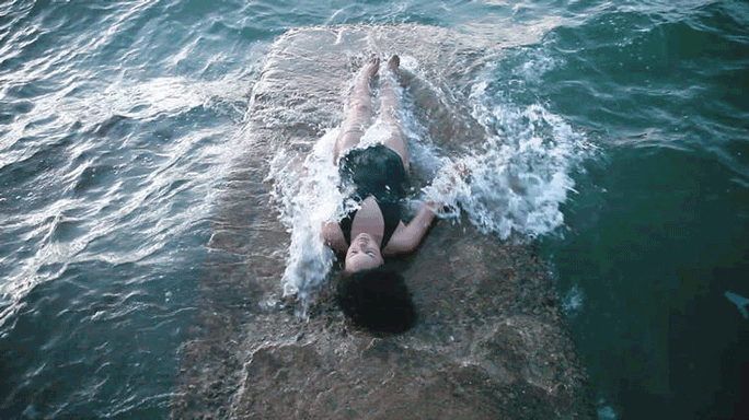 Held in a single room within the Mānoa Art Gallery, INUNDATION is a tribute to the widespread anxiety created by climate stressors. The exhibition’s signature piece – a photo from Angela Tiatia’s 2015 film Holding On – is a woman surrounded and dwarfed by a rising tide. The image evokes fear and is a clear allegory for the uncertainty that unchecked climate change holds. However, INUNDATION isn’t just a reflection of humanity’s climate change anxiety. Each artist featured in the collection explores the relationship between colonialism and climate change as well as their views on climate justice.