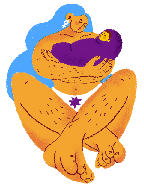 Continuing her artistic renditions of female empowerment, Kusabbi was asked to create stickers for Instagram for International Women's Day. She created an image of a mother, or as she clarified in an interview with People of Print: “a sort of anti-mother—a cool one, with the hairy legs and tattoos and things like that—just not how mums are usually portrayed.”