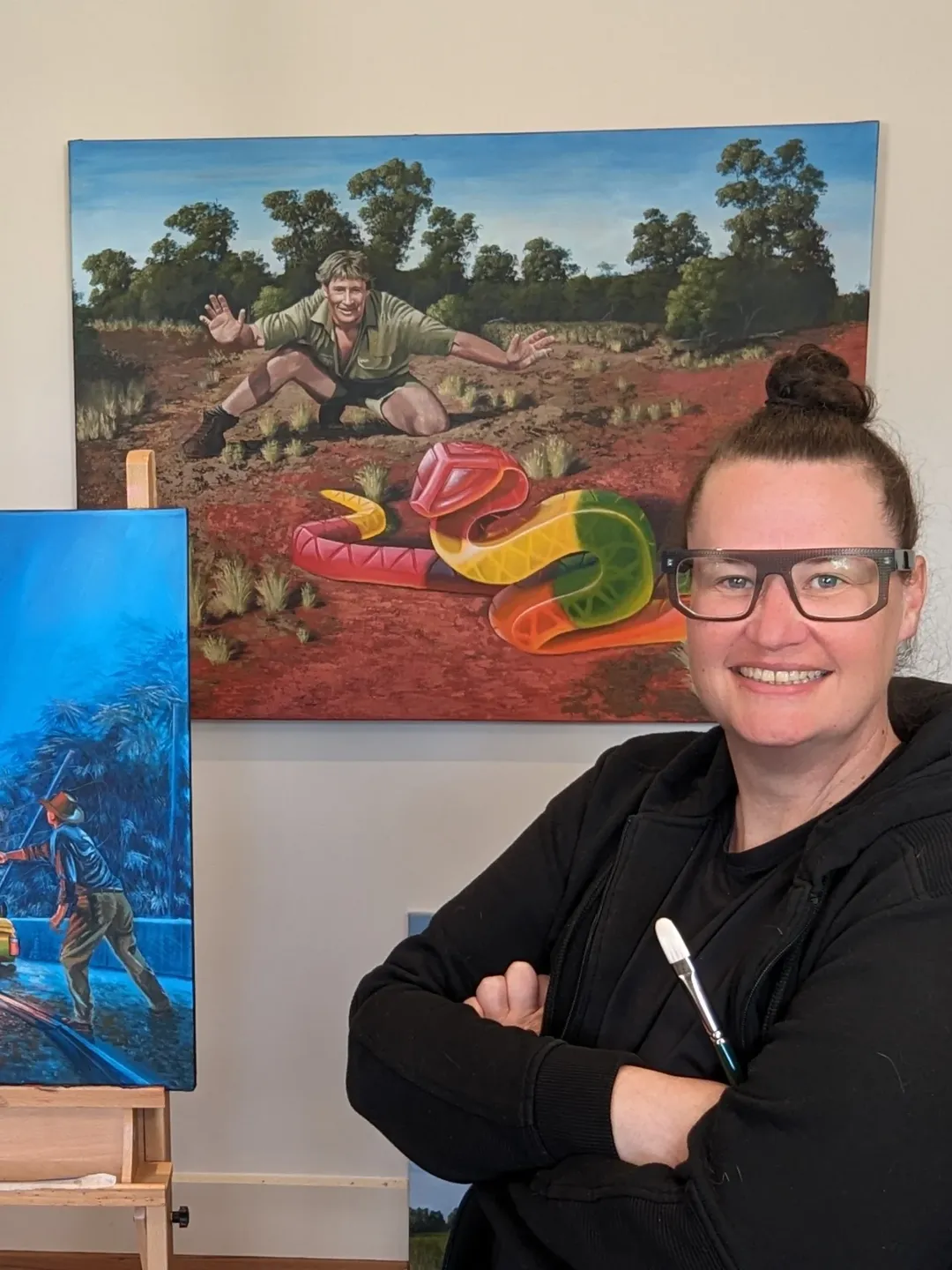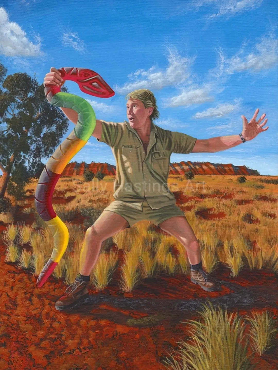 One of Hastings’ most notable works is a series of paintings depicting the late Australian conservationist and television persona, Steve Irwin handling her signature gummy snakes in the Australian outback. In an Instagram post, Hastings shared these paintings to commemorate Steve Irwin Day, which falls on November 15 annually to carry on Irwin’s message of conservation and to support his charity, Wildlife Warriors. This only goes to show Hastings’ commitment to ensuring that her art is able to help raise the public’s awareness of animal conservation.