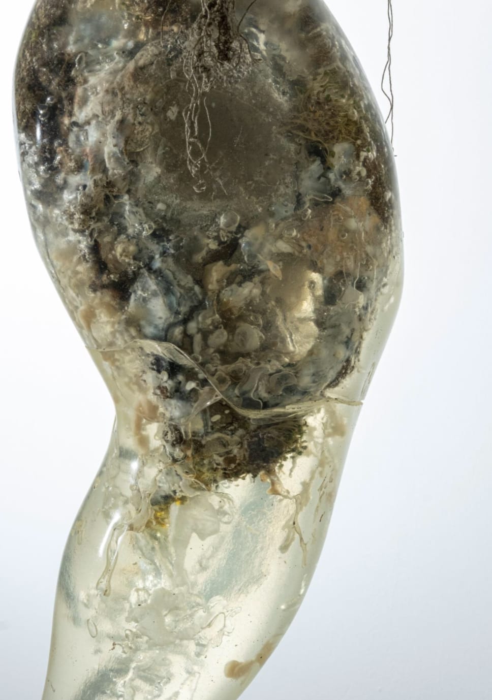 Considering today’s state of decay and decline that the planet is undergoing, with everything from climate change to the sixth mass species extinction, human forms Serafini, Arborea and Bones and Flower appear to be viable and logical imaginary options. As previously mentioned, these sculptures, or “creatures” are a fusion of plants, animals and machines. It can be inferred that because of the polluted soils, they have adapted to instead hang from the ceilings of either human made architecture or natural caves.