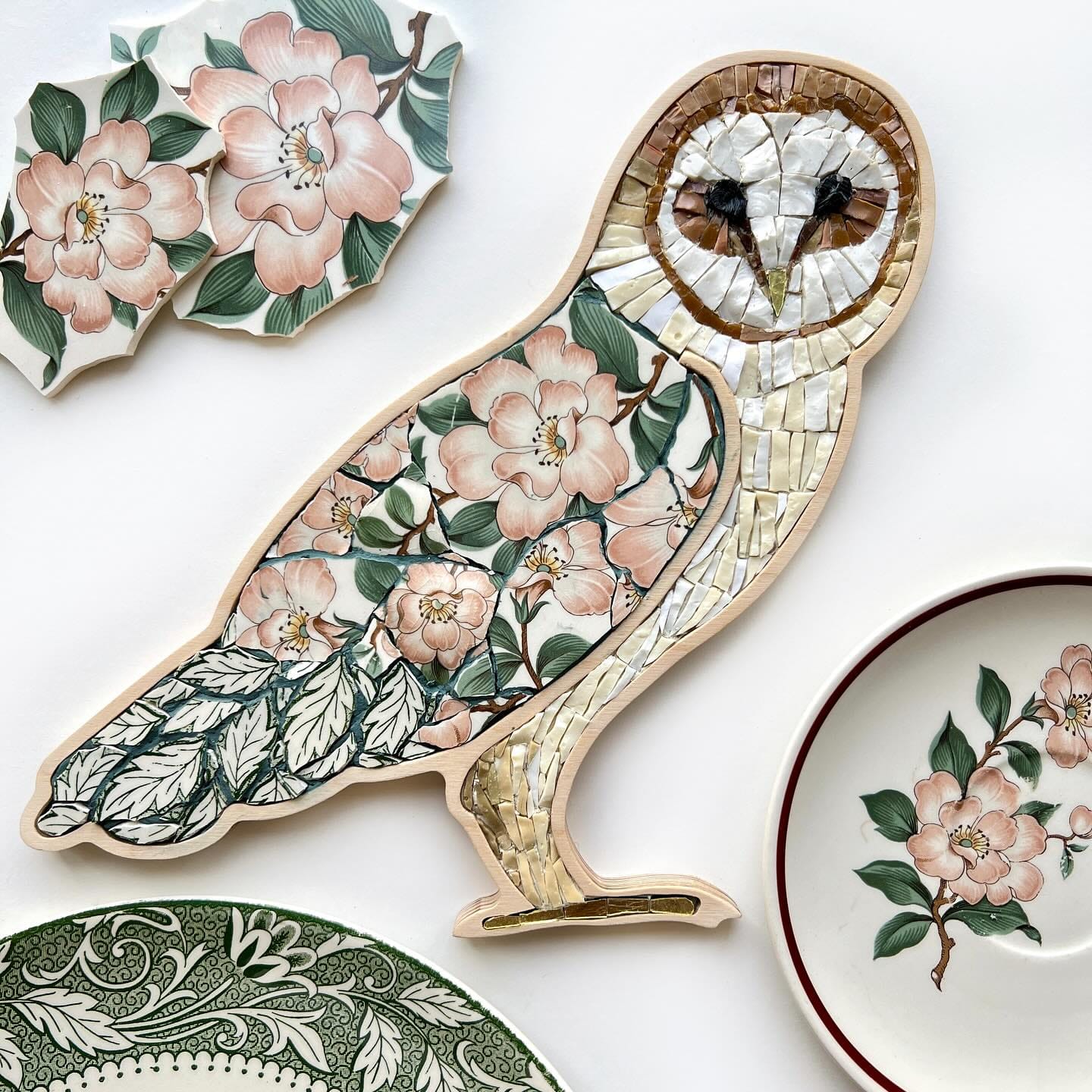 Sharra Frank’s mosaics, crafted from discarded ceramics, serve as both artistic wonders and profound reminders of the intricate connections within the natural world. By depicting animals such as owls, her work highlights the critical roles these species play in maintaining ecological balance and the devastating impact of human activities on their survival. Through her art, Frank engages viewers in conversations about biodiversity, conservation and sustainability, emphasizing the importance of protecting endangered species and their habitats. Her mosaics urge audiences to embrace more sustainable practices and advocate for the preservation of wildlife.