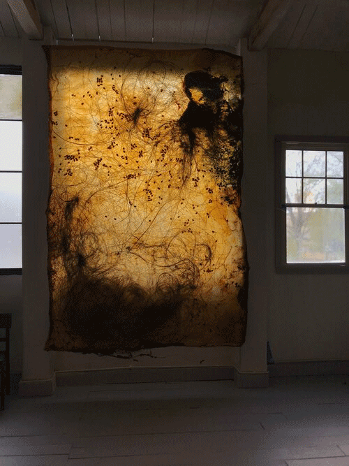 Rae Yuping Hsu’s work Contamination (2020) explores the circumstances of COVID-19 itself. Combining the unlikely objects of bacterial cellulose (SCOBY), documents verifying his status as an international student, and hair, the exhibition is a more in-depth examination of what brought the Shelter in Place Gallery into being.