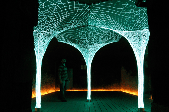 The installation is the work of Loop.pH, a London-based spatial laboratory founded by Mathias Gmachl and Rachel Wingfield in 2003. The studio’s creations, which integrate the fields of design, architecture and science, break free of the boundaries of specialization and explore the boundless possibilities of innovative thinking and creativity.