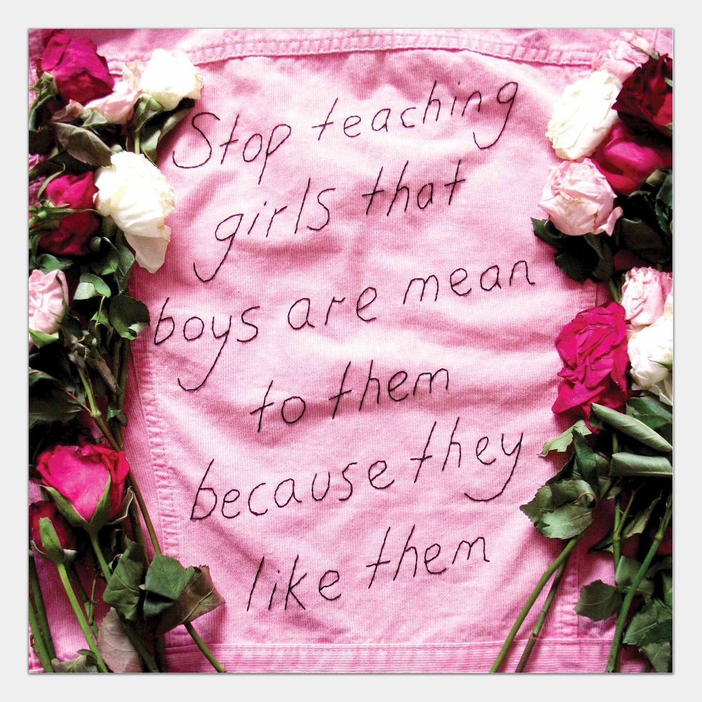 In certain other pieces, such as I GAVE YOU LOVE, which spells out “I gave you love, you gave me trust issues,” King is using a first-person point of view to seemingly share her own personal dating experiences. Pieces like this make her more relatable, showing that her embroidered dating advice comes from reliable first-hand experiences. As a woman navigating the contemporary dating scene herself, King’s work becomes a trustworthy feminist survival guide. Her work puts women first in a world that often places them last.