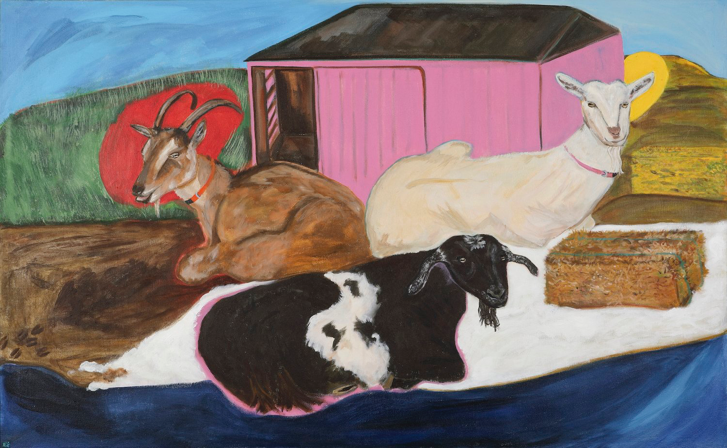 In their latest iteration, they have also worked with artist Kandace Creel Falcón, who created a billboard titled Guaranteed Income is the G.O.A.T. on County Highway 210, just outside of Foxhome, Minnesota. The painted billboard showcases three goats lying down close next to each other. “I made this painting to represent the joys and connections I recognize between how we as rural folk tend to the herd, whether they be goats or each other, to increase awareness about the concept of Guaranteed Income in our rural communities of Otter Tail County and beyond,” says Falcón about the work.